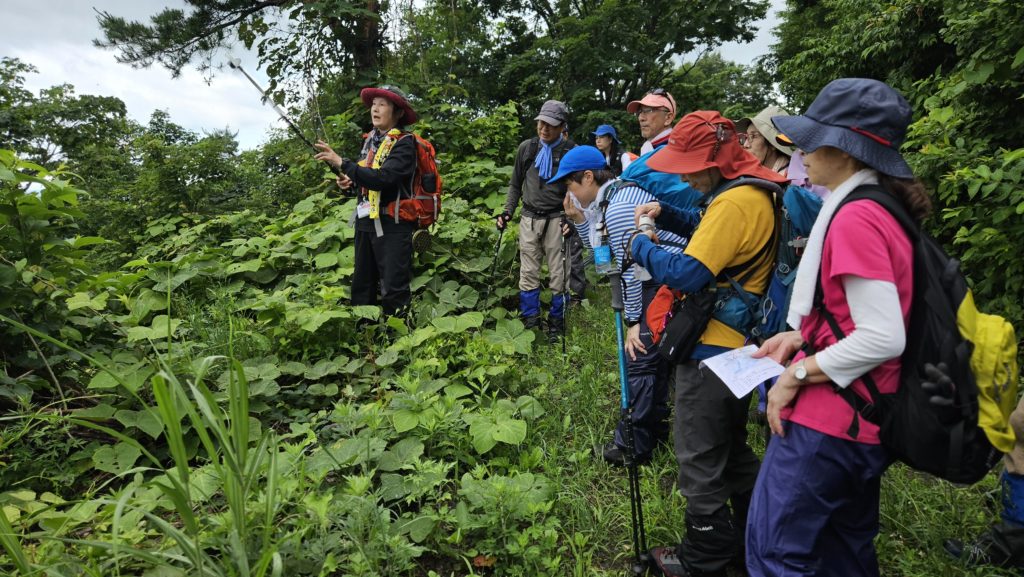 当日は、心配していた雨も登山開始時にはカラッと晴れ、米ちゃん得意の津軽弁を交えたトークで草木や花々についての解説をじっくり聞きながら黒森山の散策と自然への親しみ方を学びました