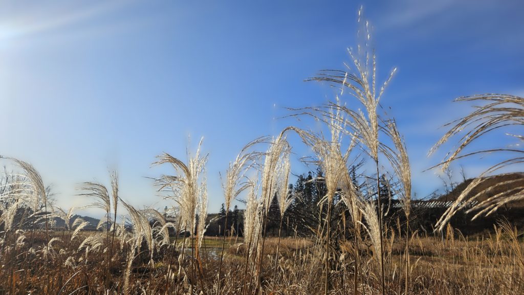ひんやりとした冷たい空気の中でススキの穂が太陽に照らされキラキラ✨✨