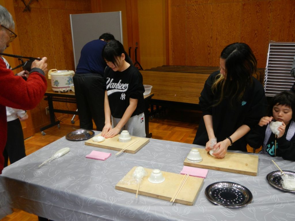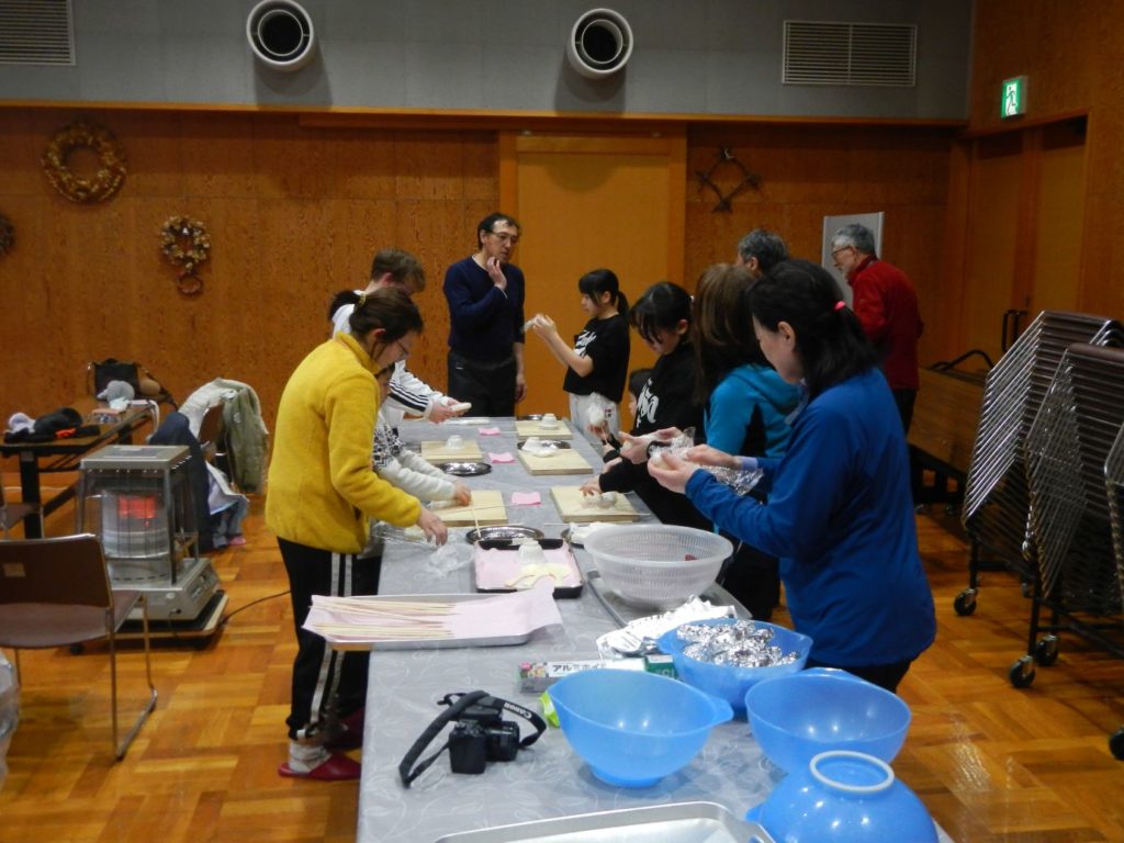 次は、センター室内で五平餅作り五平餅は、中部地方の山間部発祥の郷土料理だそうで、林業や山の仕事をする人たちの安全を祈り「山の講」の前夜に食べたそうです。