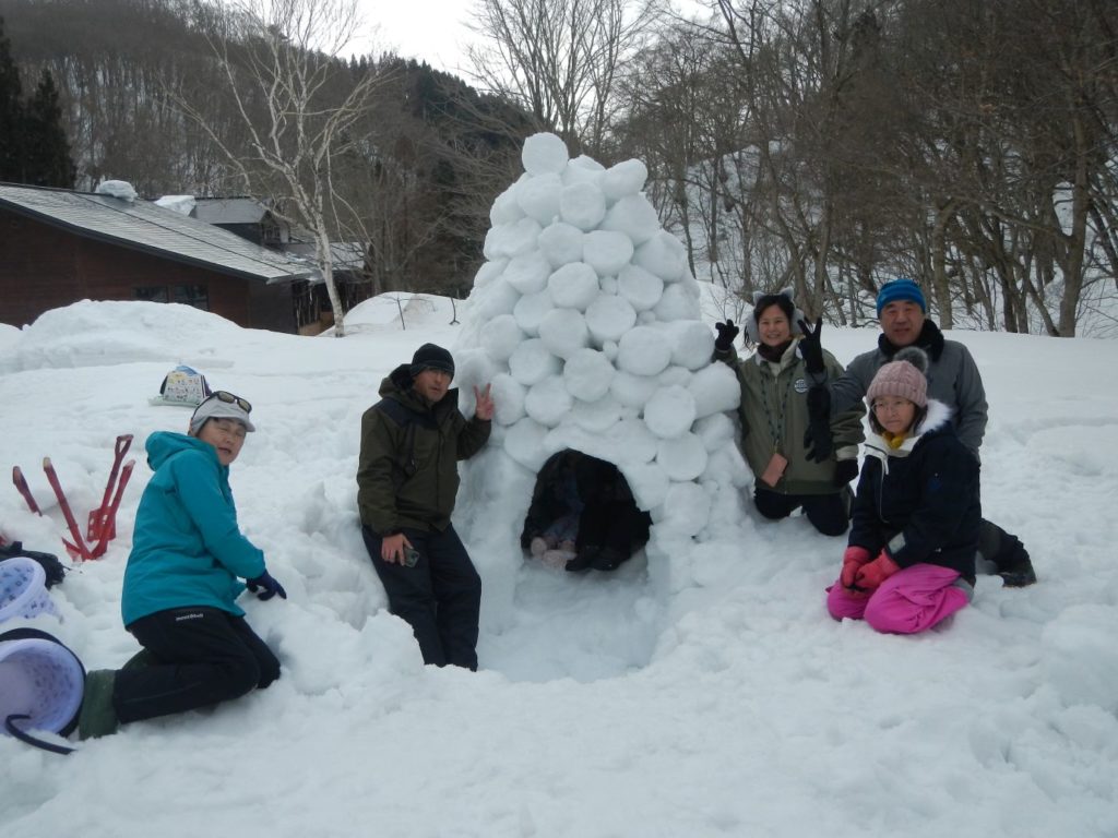 最後はイグルーの前で記念撮影(^_-)-☆大人も子供も大いに冬の梵珠山を楽しんだ一日でした♪