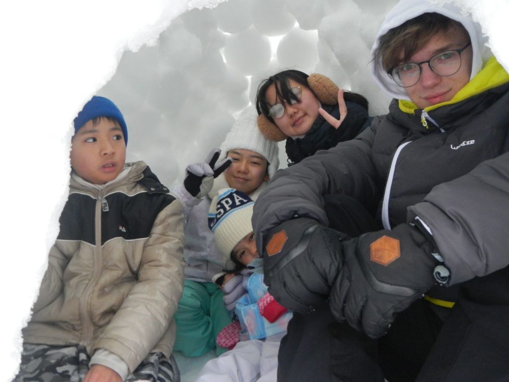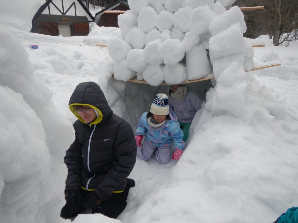 ヤッター‼皆で協力して作ったイグルー!充実感と達成感を得た表情です(ドヤ!)