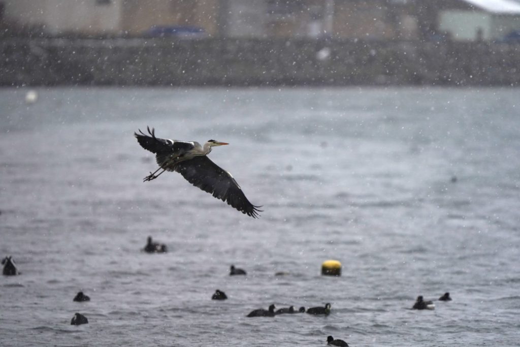 飛び立つアオサギ