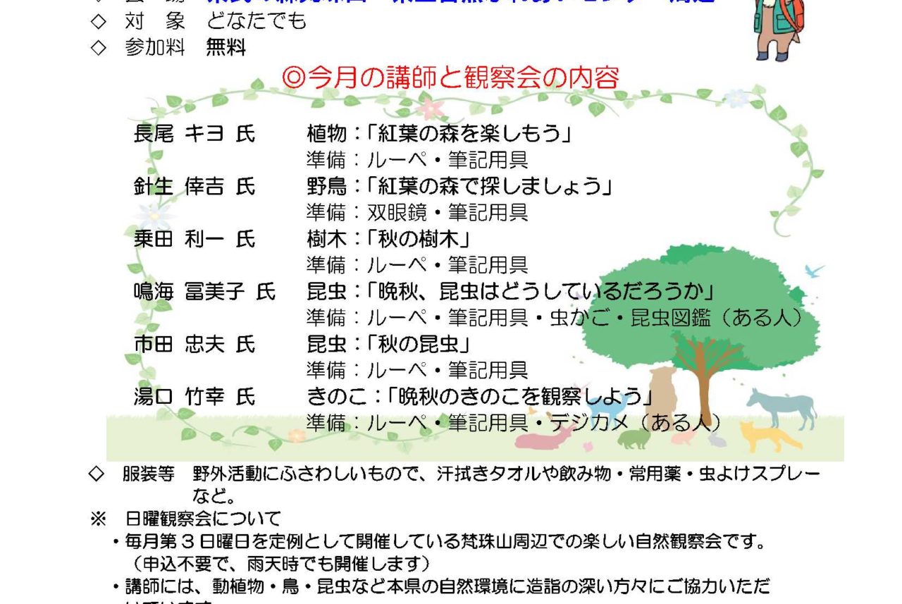 🌲🍄🐛『10月日曜観察会』🐦🐞🌸