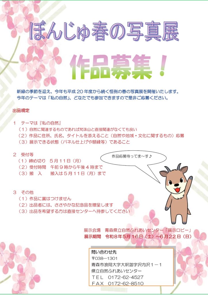 「ぼんじゅ春の写真展」募集 | 青森県立自然ふれあいセンター