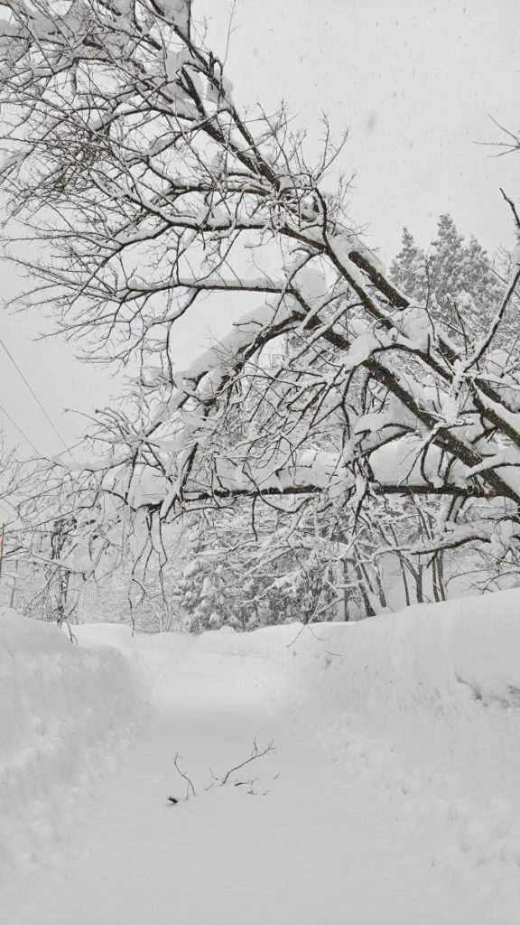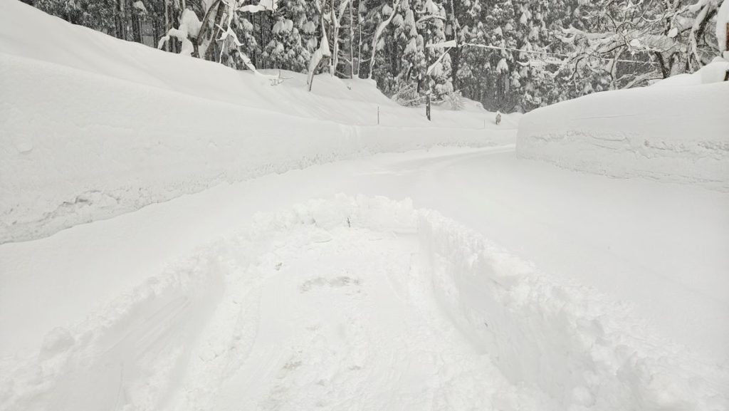 ※午後は、除雪車が入り通行できるようになりましたが、道幅がかなり狭くなっております。 対向車同士のすれ違いが難しい状況です(一車線)